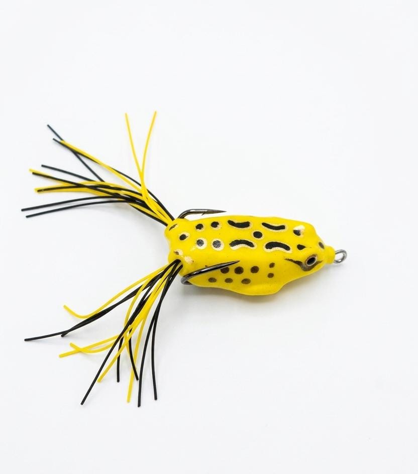 Isca de superfície projetada para atrair predadores como traíras e tucunarés, possui um formato tridimensional realista com borracha macia e ganchos únicos projetados para evitar enroscos na vegetação aquática, ideal para locais com muitos galhos, pedras ou vegetação densa, 3 variação diferente, com 4cm de 4g na cor verde, 5cm de 10g na cor amarelo e 6cm de 12g na cor verde.
