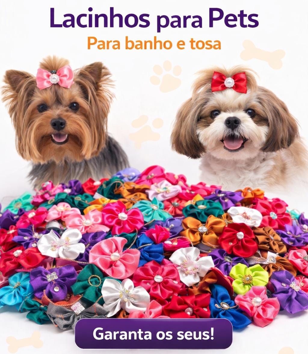 Laços para pet confeccionado artesanalmente em fita de cetim com cores e enfeites sortidos.