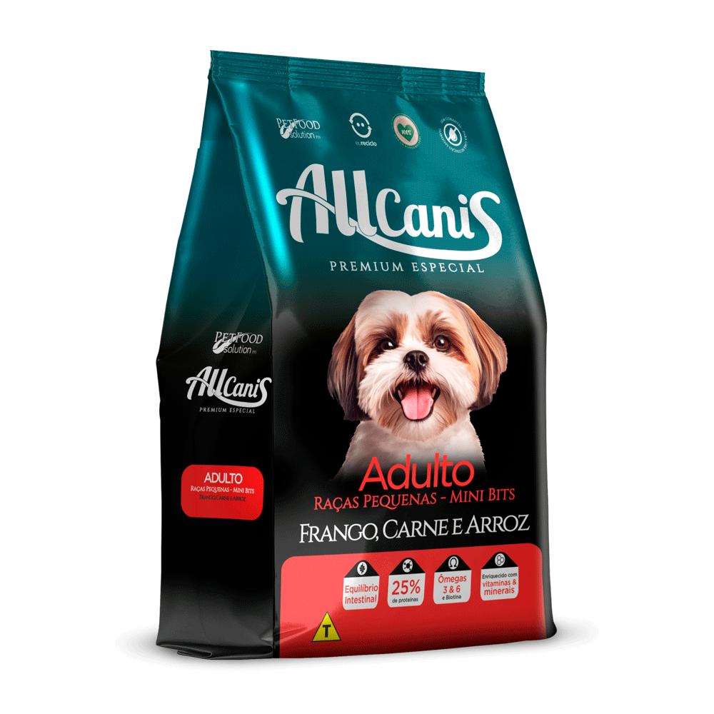 Ração allcanis cães adulto porte pequeno sabor frango carne e arroz 15kg